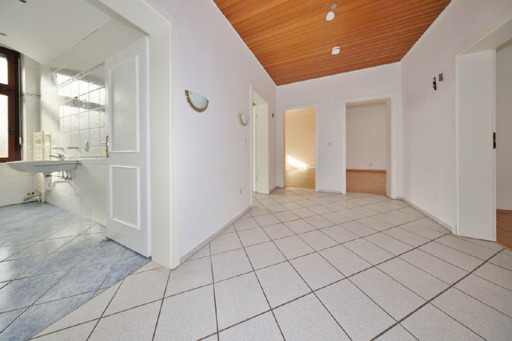 Die Wohnung bietet ca. 101 m² Wohnfläche und überzeugt mit einem durchdachten Grundriss. Mittelpunkt ist die großzügige Diele, über die alle Räume erreichbar sind: drei geräumige Zimmer, eine große Küche sowie zwei Fenster-Bäder.