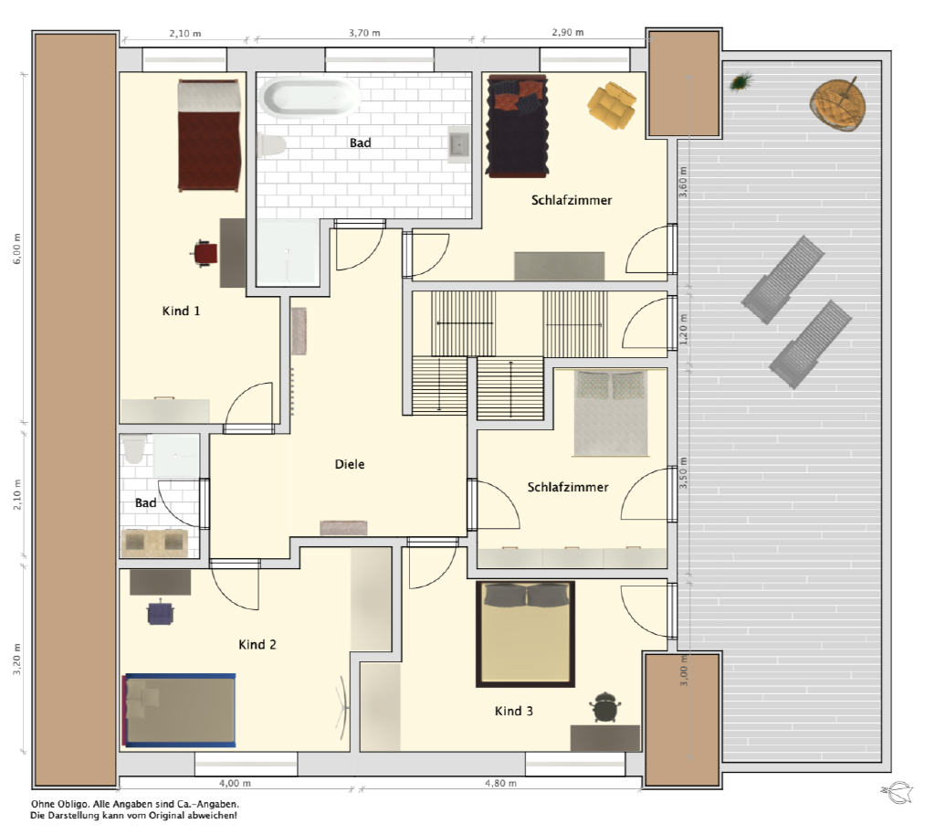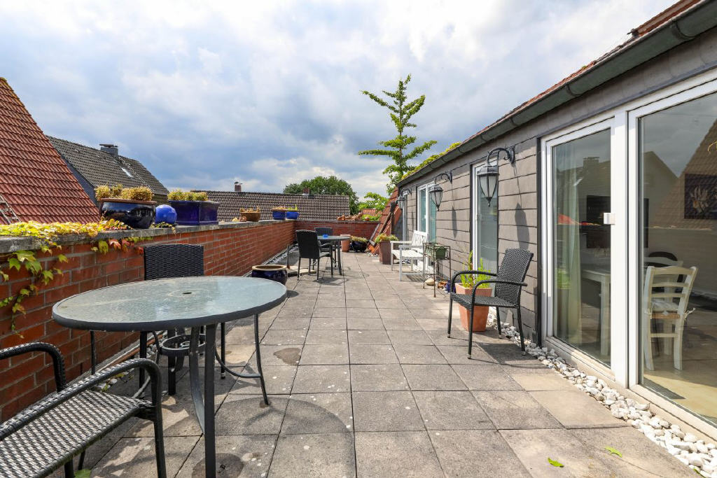 Das Obergeschoss helle Räume und sonnige Dachterrasse: