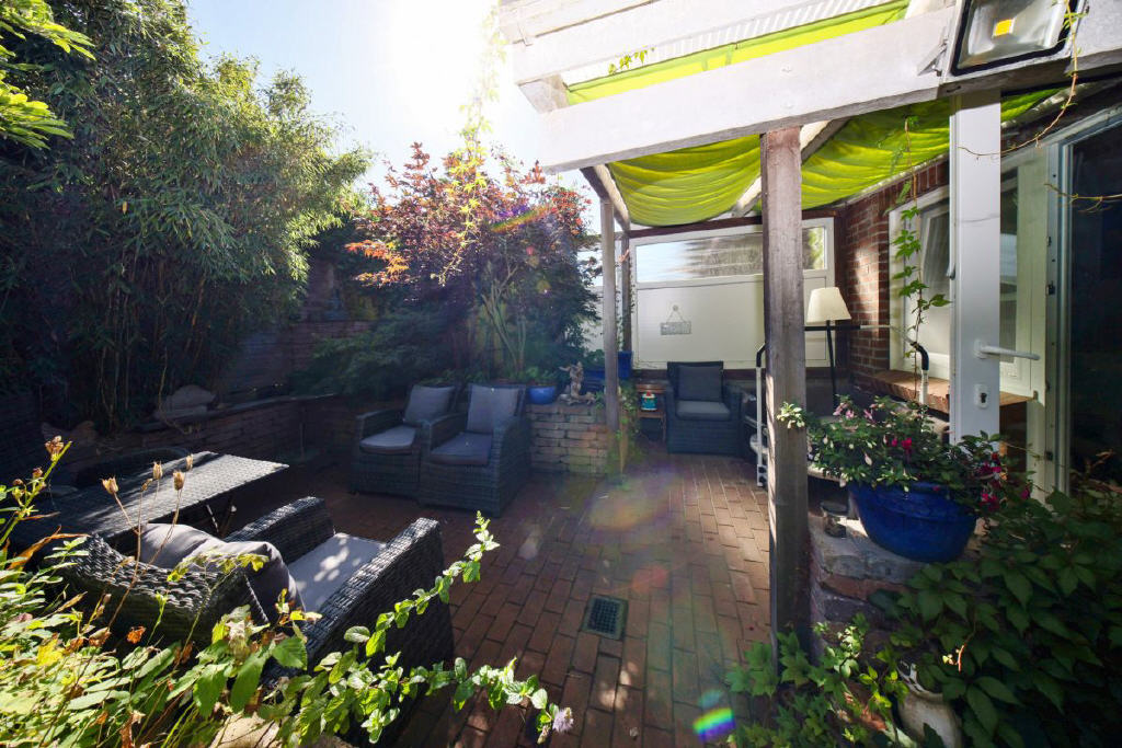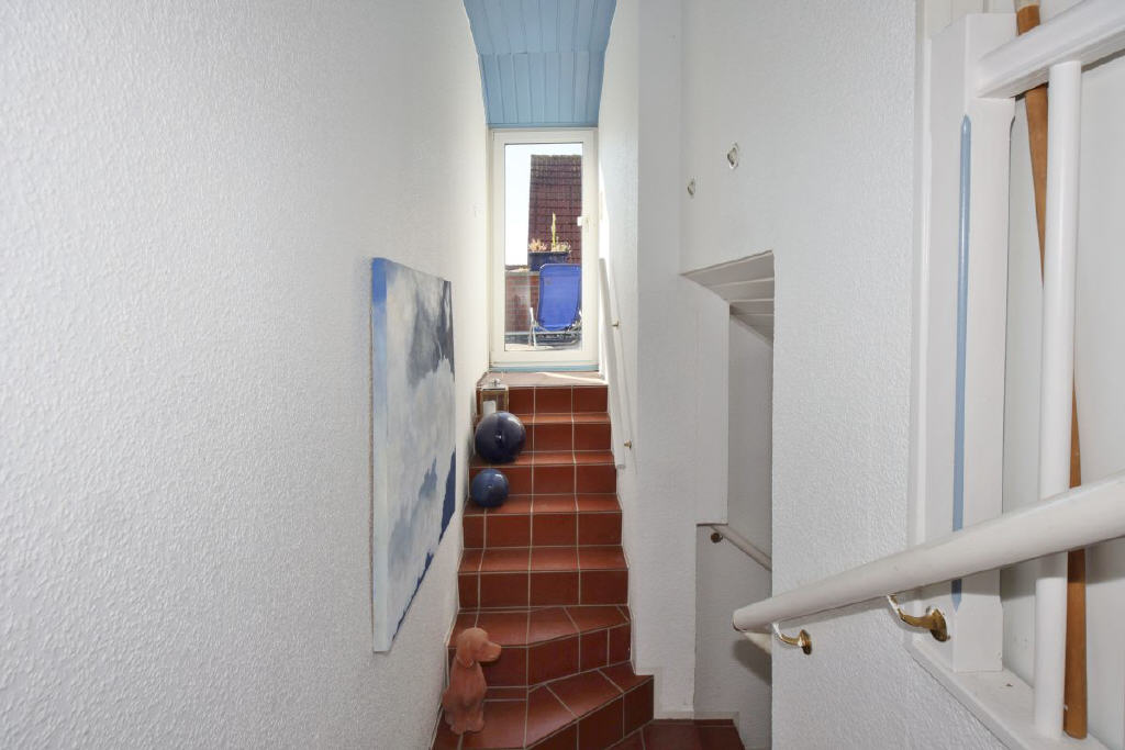 Besonderes Highlight: Zwei der Zimmer bieten direkten Zugang zur der großen sonnigen Außenfläche, die teils auch als Dachterrasse genutzt wurde, welche einen wunderschönen Blick über die Dächer von Bant eröffnet.