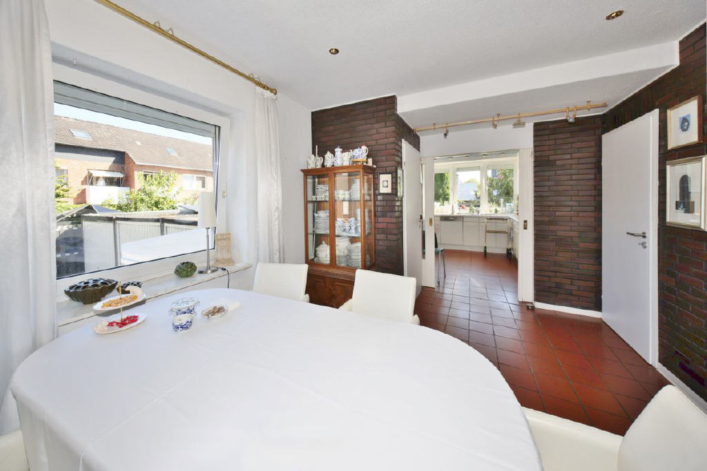 Dieses außergewöhnliche Klinkerhaus aus dem Jahr 1956 (Wiederaufbau), das 1994 umfassend um-, angebaut und modernisiert wurde, liegt eingebettet zwischen den historischen Werfthäusern an einer charmanten Klinkerstraße.