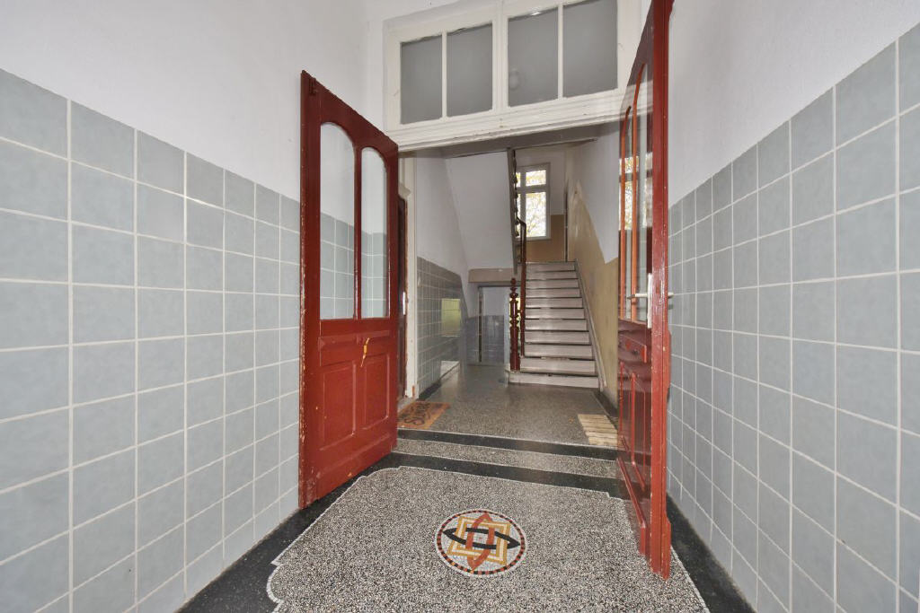 Bereits das Entrée des Hauses vermittelt ein authentisches Lebensgefühl der Jahrhundertwende: Terrazzostufen, erhaltene Holztüren und die ursprüngliche Treppenanlage bilden einen stimmigen Auftakt, bevor Sie die Wohnung betreten.