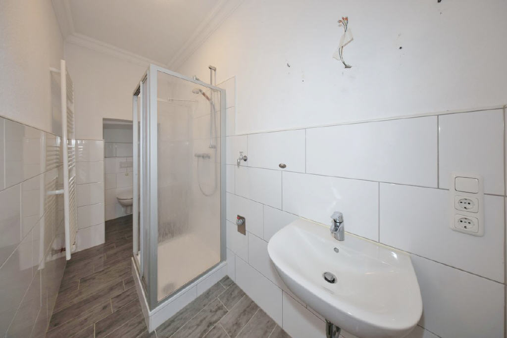 Das Fenster-Bad ist mit Dusche, WC und Waschbecken ausgestattet. Praktisch auch die zusätzlichen Stauräume: ein Abstellraum im Treppenhaus auf halber Etage und ein separater Kellerraum. Darüber hinaus ist die Wohnung bereits mit Glasfaseranschluss ausgestattet. Ein Gemeinschafts-Fahrradkeller steht allen Bewohnern zur Verfügung.