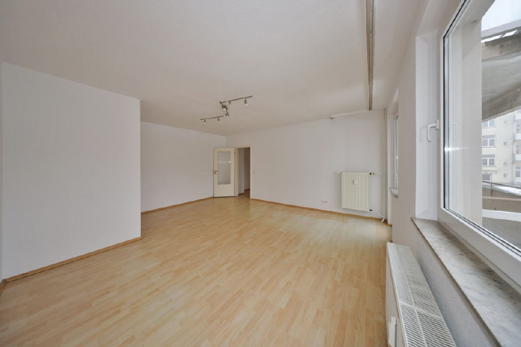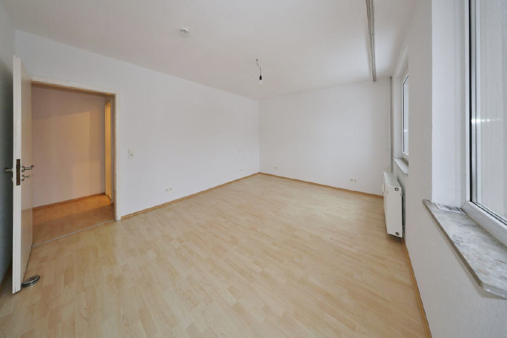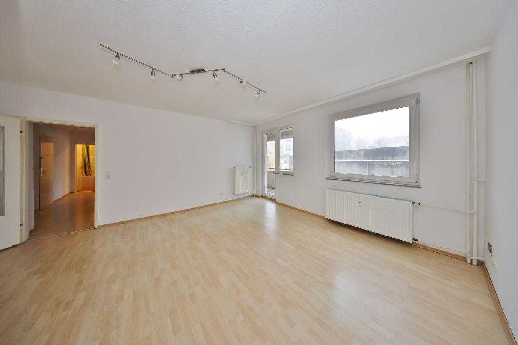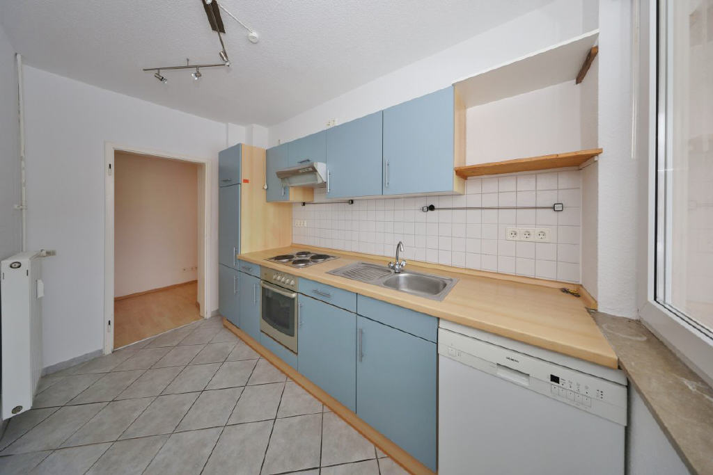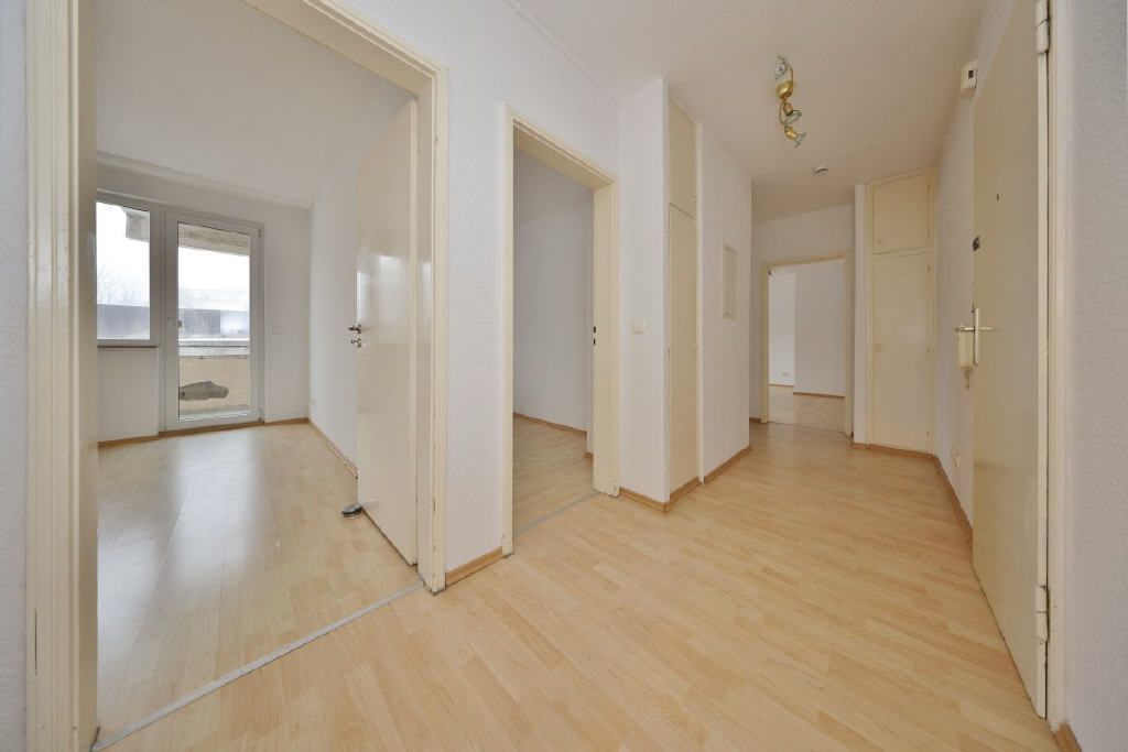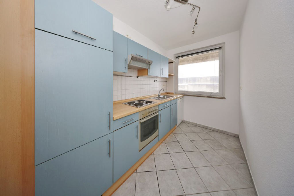 Die Wohnung im 1. Obergeschoss bietet rund 77 m² Wohnfläche, verteilt auf drei gut geschnittene Zimmer und befindet sich in einem renovierten Zustand. Mittelpunkt ist das helle Wohnzimmer mit Zugang zum Südbalkon, von dem sich der Blick ins Grüne richtet. Ebenso verfügt das großzügige Schlafzimmer über eine Tür mit Zugang auf den Balkon. Das Badezimmer ist mit Badewanne und WC ausgestattet und verfügt über einen praktischen Handtuchheizkörper. Die Küche verfügt über eine moderne und praktische Einbauküche mit Geschirrspüler. In der Diele stehen zwei Wandschränke als sehr praktische Abstellmöglichkeit zur Verfügung. Ergänzt wird das Raumangebot durch einen separaten Kellerraum und eine Bodenkammer. Ein Gemeinschaftstrockenboden kann mitgenutzt werden.