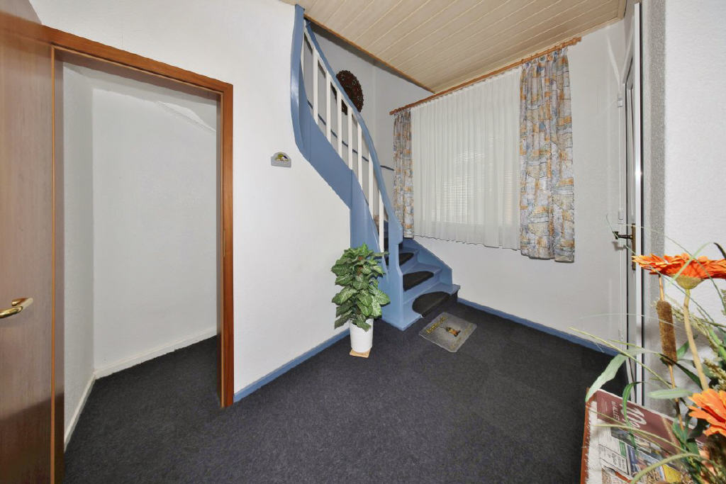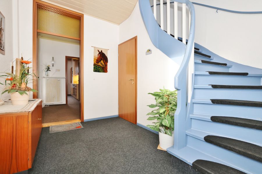 Der gepflegte Gemeinschaftsflur führt in den Keller: Für jede Wohneinheit gibt es einen geräumigen Abstellraum; zusätzlich stehen ein gemeinsamer Fahrradraum und ein Waschmaschinenraum zur Verfügung.