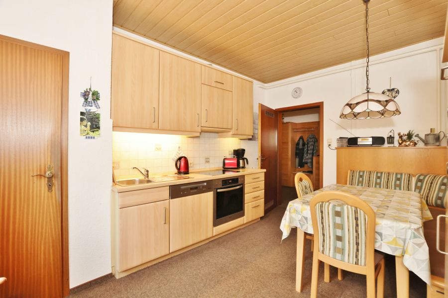 4-Zimmer-Wohnung mit Wohnküche, Schlafzimmer, Wohnzimmer, Büro sowie Duschbad mit WC. Das zu öffnende Oberlicht sorgt für angenehmes Tageslicht. Das Dachgeschoss verfügt zusätzlich über einen geräumigen Dachboden, der reichlich Stauraum bietet.