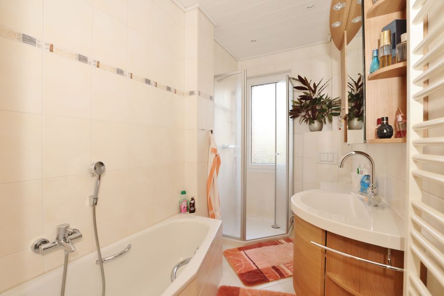 4-Zimmer-Wohnung mit großzügigem Wohn-/Essbereich, über Küche und Flur erreichbar, zwei Schlafzimmer, Küche mit Einbauküche sowie ein Bad mit Dusche, Waschtischmöbel, WC und platzsparender Raumsparbadewanne ideal für mehr Bewegungsfreiheit.