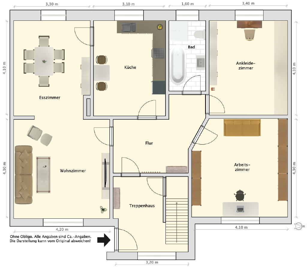 1. Obergeschoss (ca. 91 m² Wfl.)