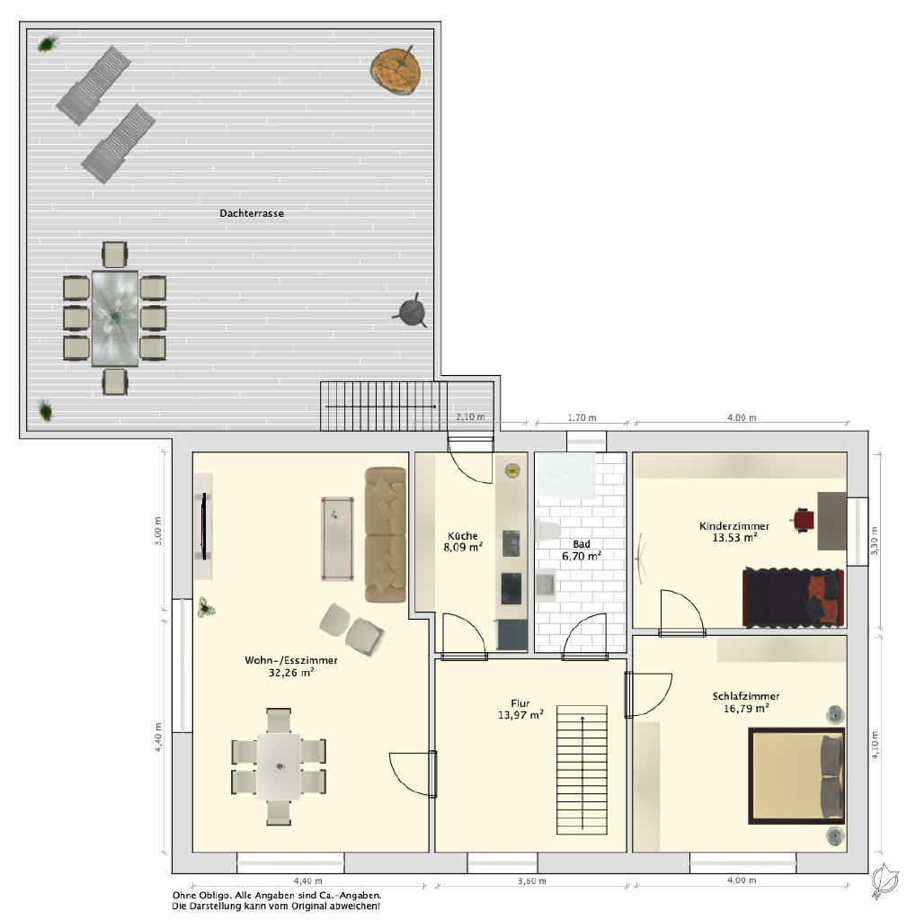 Über eine offene Treppe in der zweiten Wohneinheit gelangen Sie in das Obergeschoss. Hier erwartet Sie ein lichtdurchfluteter Wohn- und Essbereich mit Kaminecke, zwei Schlafzimmern, ein modernes Bad sowie eine stilvolle Küche mit Zugang auf die beeindruckende Dachterrasse. Von hier aus eröffnet sich ein malerischer Blick über fast das gesamte Anwesen mit Sandplatz, Stallungen, gepflegten Weideflächen und alten Obstbäumen. Eine Wendeltreppe im Flur führt weiter ins Dachgeschoss, wo zwei zusätzliche Zimmer und ein weiteres Bad viel Raum für Gäste, Hobby und Homeoffice bieten.