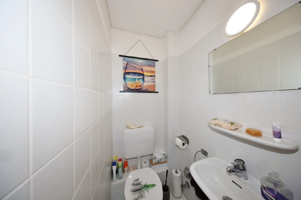 In einem 3-Parteien-Haus im schönen grünen Stadtteil Altengroden in Wilhelmshaven und in unmittelbarer Nähe des Reitsportvereins, der Jade-Hochschule und des Klinikums liegt diese hübsche und helle Wohnung im 1. Obergeschoss. Die Küche ist ausgestattet mit einer Einbauküche. Das Bad verfügt über ein Fenster, Dusche, Waschbecken und Waschmaschinenanschluss. Das WC ist separat direkt neben dem Bad angeordnet. Das ca. 20 m² große Wohnzimmer ist aufgrund der großen Fenster ein heller und freundlicher Raum. Die beiden Schlafzimmer, das Wohnzimmer und der Flur sind mit Laminat ausgelegt. Das Bad und das WC sind gefliest. Im Außenbereich des Hauses steht ein Fahrradraum zur Verfügung. Parkplätze sind direkt am Haus vorhanden.