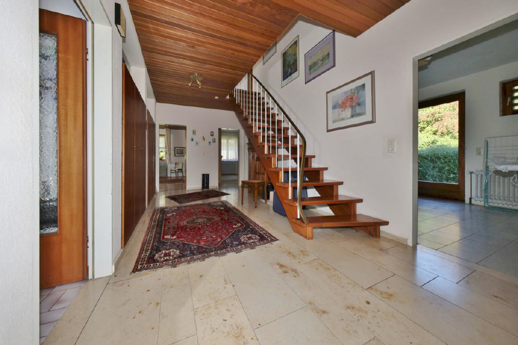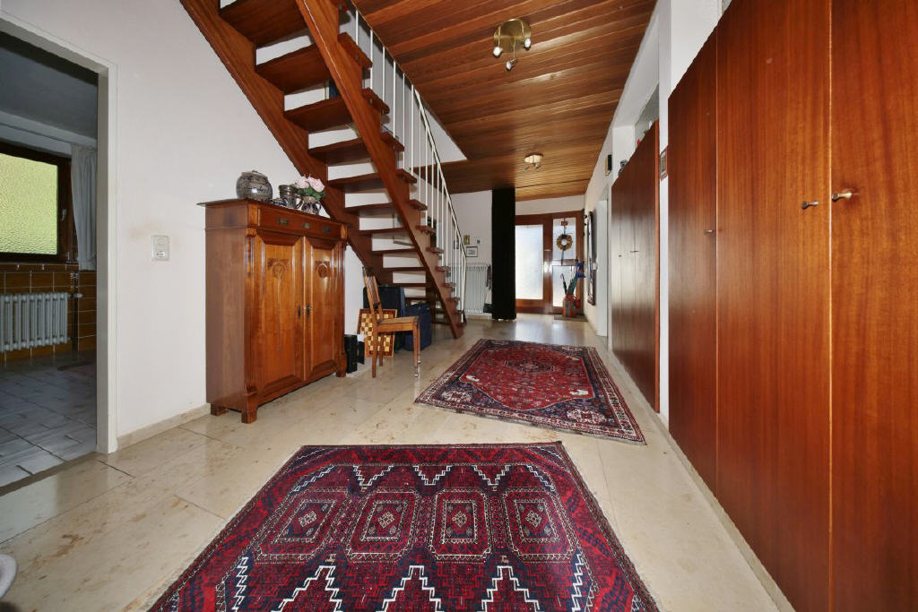 Schon beim Betreten empfängt Sie eine großzügige Diele mit der offenen Holztreppe ins Obergeschoss. Von der Diele aus sind sämtliche Räume zugänglich: