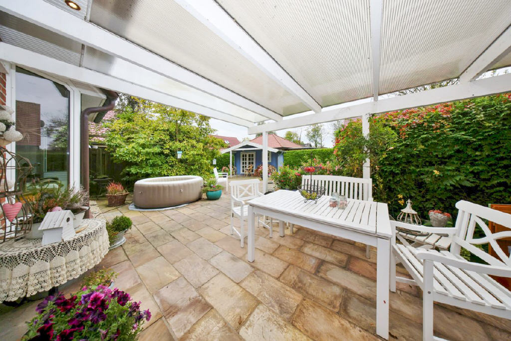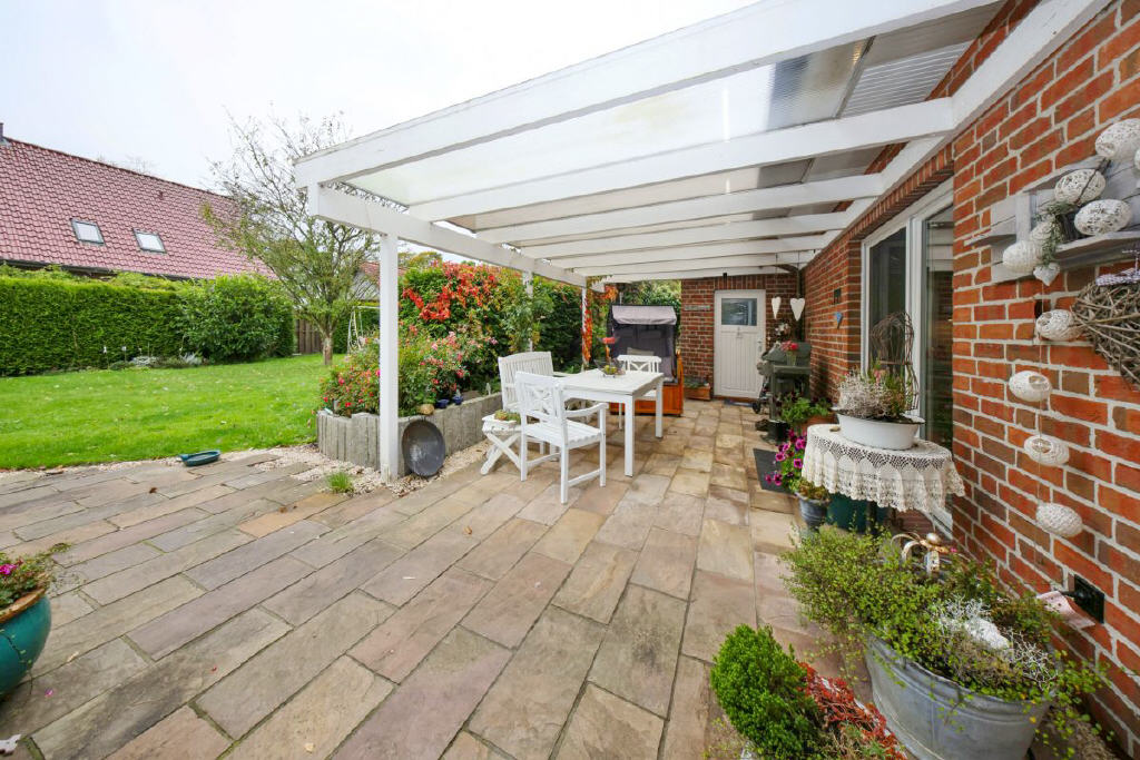 Der Außenbereich zeigt sich ebenso gepflegt wie liebevoll gestaltet: Obstbäume, blühende Beete, ein Gartenhaus im Landhausstil und ein lauschiger Sitzbereich - große überdachter Terrassenbereich + große offene Terrasse - schaffen eine Atmosphäre, in der man sich sofort wohlfühlt. Der Garten ist auch im Heckenbereich "Dackeldicht" eingezäunt ;-). Neben der Garage und dem Carport stehen weitere Stellplätze zur Verfügung der Carport kann je nach Bedarf geschlossen werden. Auch ein Wohnmobilstellplatz ist möglich.
