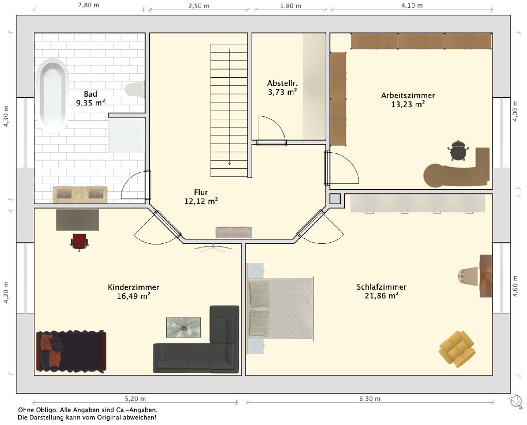 PS: Übrigens kann das Obergeschoss auch als eigene Wohnung genutzt werden. Im Kinderzimmer befinden sich hinter der geschlossenen Wand die Küchenanschlüsse und es gibt eine separate Strom-Unterverteilung für das Obergeschoss.