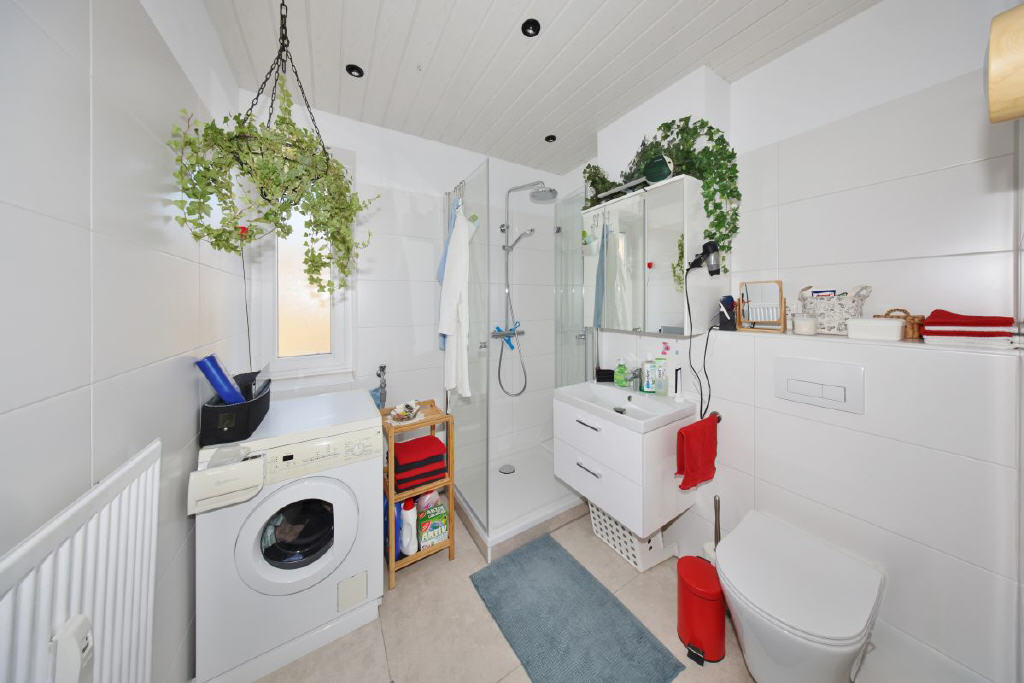 Im Keller stehen ein eigener Kellerraum, sowie ein Fahrradraum, eine Waschküche und ein Trockenraum zur gemeinschaftlichen Nutzung bereit. Ein fester PKW-Stellplatz im Außenbereich gehört ebenfalls zur Wohnung. Zusätzlich befindet sich auf dem Dach des Hauses eine PV-Anlage, die zur nachhaltigen Energieversorgung beiträgt.