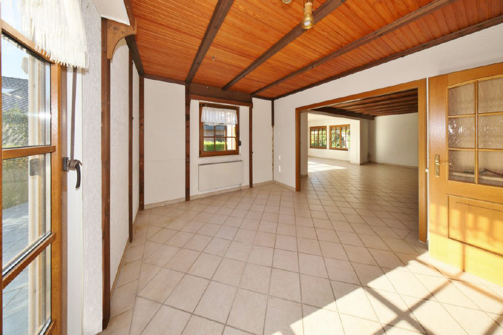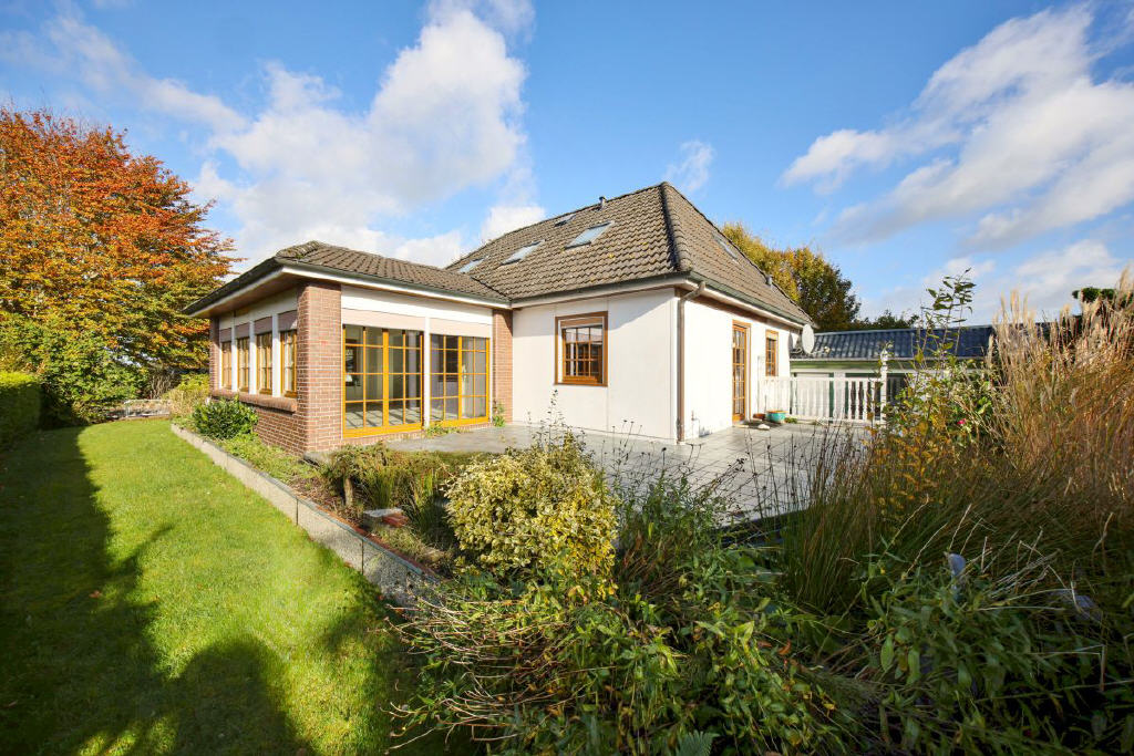 Im idyllischen Dorf Accum, einem Ortsteil von Schortens im Landkreis Friesland, erwartet dieses freistehende Einfamilienhaus aus dem Jahr 1972 Menschen mit Sinn für Raum, Ruhe und Gestaltungsmöglichkeiten. Auf einem großzügigen Grundstück von etwa 928 m² erhebt sich dieses weiße Okal-Haus, das mit seinen soliden Strukturen, dem klaren Grundriss und viel natürlichem Licht ideale Voraussetzungen für eine behutsame Modernisierung bietet. Die Wohnfläche von ca. 146 m² verteilt sich auf zwei Ebenen und wird durch eine Nutzfläche von etwa 53 m² ergänzt. Zusätzlich verfügt das Haus über einen Teilkeller sowie einen praktischen Kriechkeller. Eine Garage gehört selbstverständlich ebenfalls dazu. Ein besonderes Highlight ist der Wintergarten, der im Jahr 2001 an das Haus angebaut wurde. Mit einer Fläche von rund 28 m² und Fußbodenheizung bietet er zu jeder Jahreszeit einen herrlichen Platz, um Sonne und Gartenblick zu genießen. Durch den Wintergarten ist im Erdgeschoss ein beeindruckend großzügiger Wohnbereich entstanden, der sich über weite, helle Flächen erstreckt und direkten Zugang zur sonnigen Terrasse sowie in den gepflegten Garten bietet. Im Erdgeschoss befinden sich außerdem eine Küche, ein weiteres Zimmer, ein Duschbad mit WC sowie ein kleiner Heizungsraum, der geschickt im Windfang untergebracht ist. Vom Flur aus führt eine Tür hinab in den Kellerbereich; praktisch für Lagerung und Vorräte. Die sichtbaren Holzbalken, Holzdecken und massive Türen verleihen dem Haus einen warmen, handwerklichen Charakter, der nach einer Renovierung wieder wunderbar zur Geltung kommen kann. Das Obergeschoss hält drei geräumige Zimmer, ein Badezimmer mit Badewanne, ein separates WC sowie einen Abstellraum bereit. Rund um das Haus sorgt der gepflegte Garten mit Rasenflächen, Zierpflanzen und einer schönen Terrasse für eine behagliche, ruhige Atmosphäre. Abgeschirmt von Hektik und Stress lassen sich hier entspannte Stunden verbringen. Wer ein solides Haus mit viel Substanz und großem Potenzial sucht, findet in diesem Objekt in Accum eine wunderbare Basis für individuelle Wohnideen. Mit handwerklichem Geschick, Kreativität und Liebe zum Detail lässt sich hier ein Lebensort schaffen, der Bestand hat; in einer Umgebung, die Gelassenheit und Naturverbundenheit vereint.