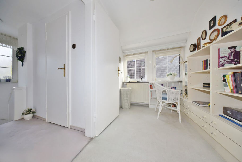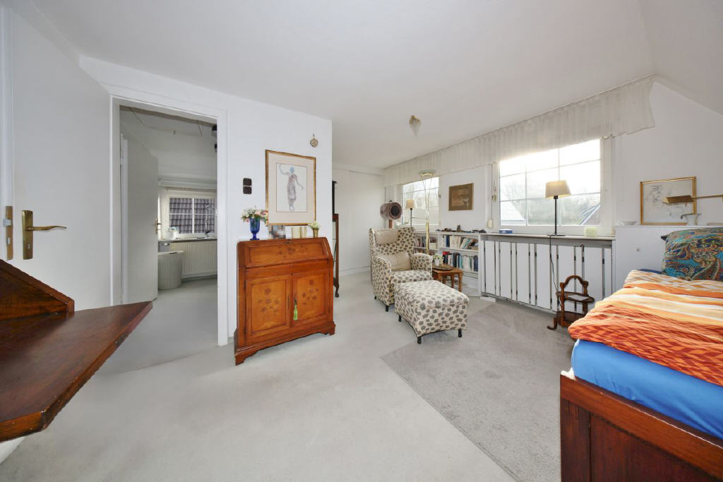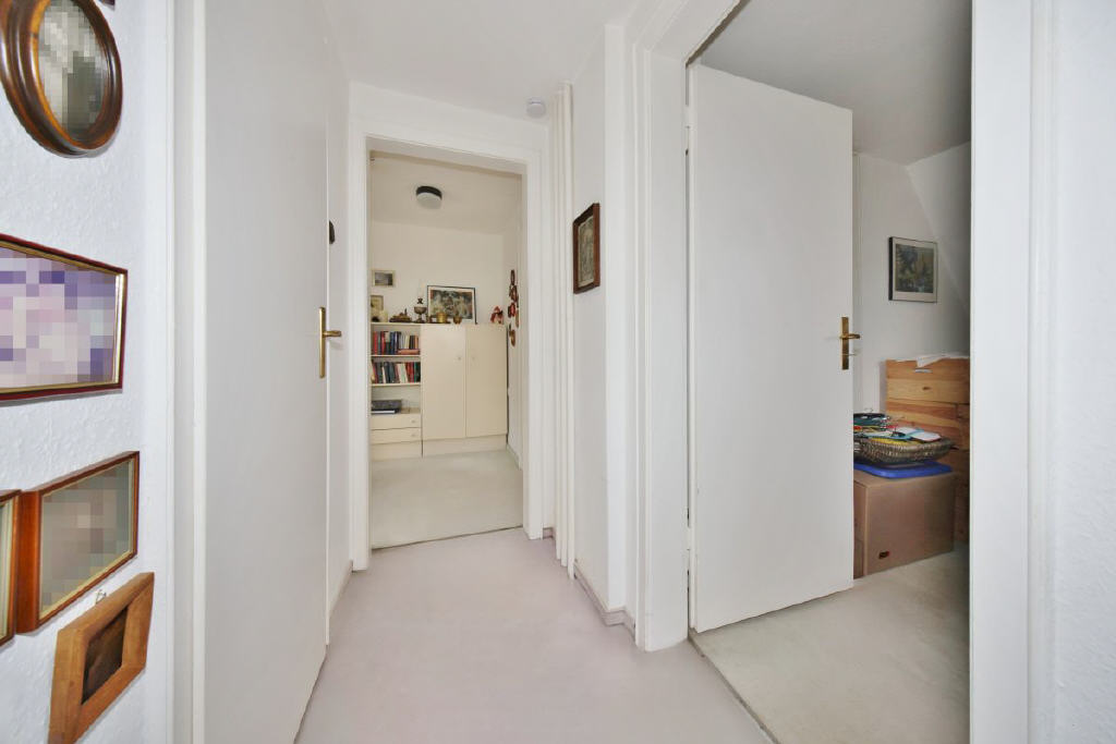 Das Obergeschoss bietet viel Platz für individuelle Möglichkeiten: drei Zimmer, die sich als Schlafräume, Büro oder Hobbybereiche eignen, und ein Bad mit Dusche und WC. Alle Räume strahlen eine warme Atmosphäre aus.
