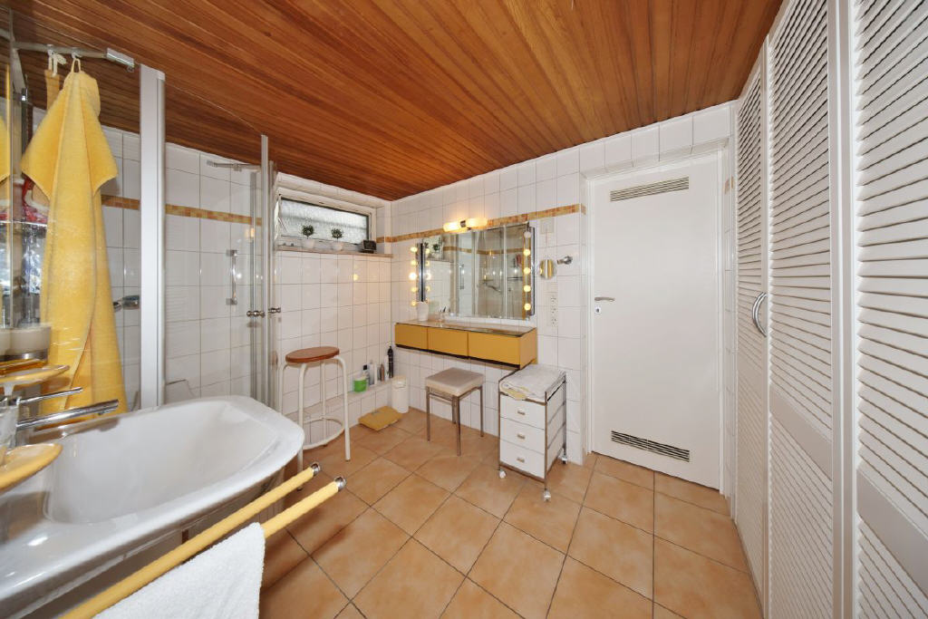 Jetzt kommen wir in das Untergeschoss: Selten erlebt man einen Keller, der so wohnlich und gemütlich wirkt! Fast vollständig mit Teppich ausgelegt, entsteht hier ein zusätzlicher Bereich mit vielseitigen Nutzungsmöglichkeiten. Neben einem weiteren WC, einem großzügigen Bad mit Dusche, einem Hauswirtschaftsraum und einem zusätzlichen Raum befindet sich hier ein weiteres Highlight: die Tiefgarage direkt unter dem Haus eine seltene, exklusive Lösung, die Komfort und Wetterschutz vereint.