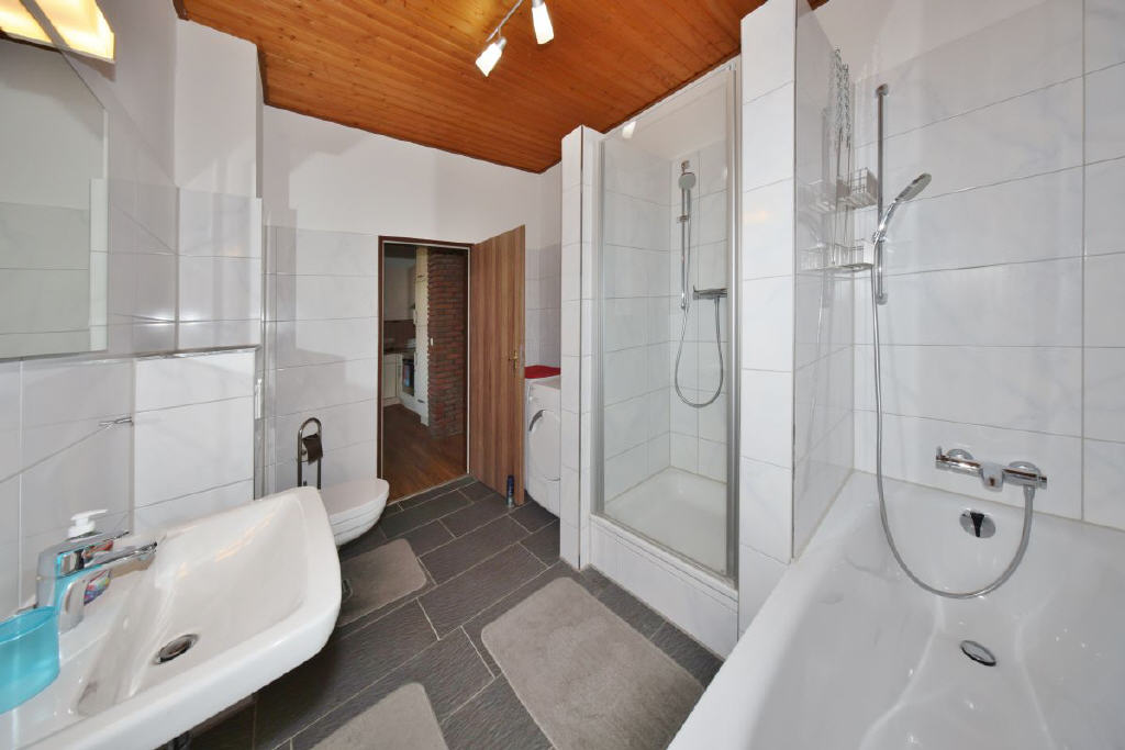- renoviertes Tageslichtbad (2017) mit Badewanne, Dusche, WC, Waschbecken, Badmöbeln, Waschmaschine und Trockner
