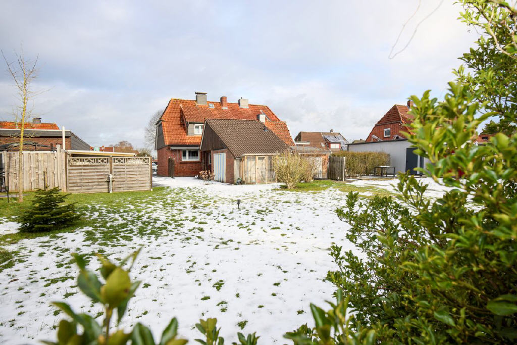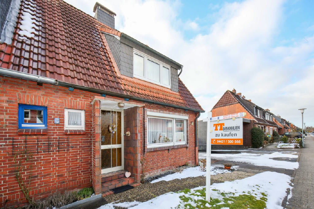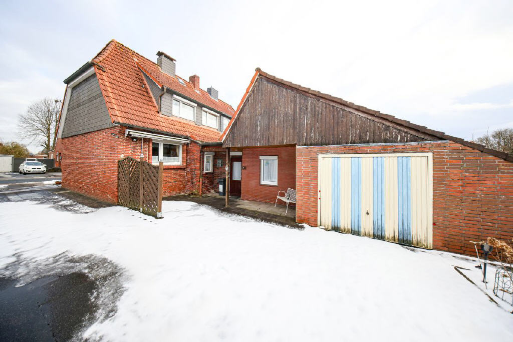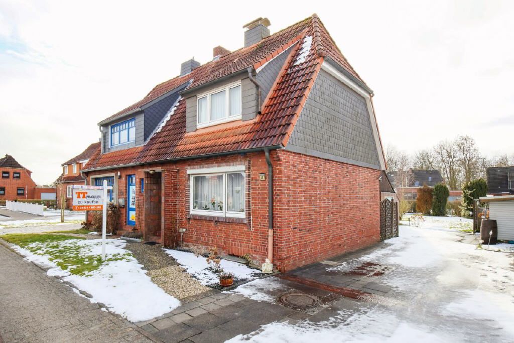 Inmitten der gewachsenen und beliebten Siedlungsstruktur von Wilhelmshaven-Voslapp befindet sich diese Doppelhaushälfte aus dem Baujahr 1938 in angenehm ruhiger Lage der Sengwarder Straße. Das Umfeld ist geprägt von gepflegten Siedlungshäusern mit viel Grün; ein Wohngebiet mit Charakter und Geschichte.