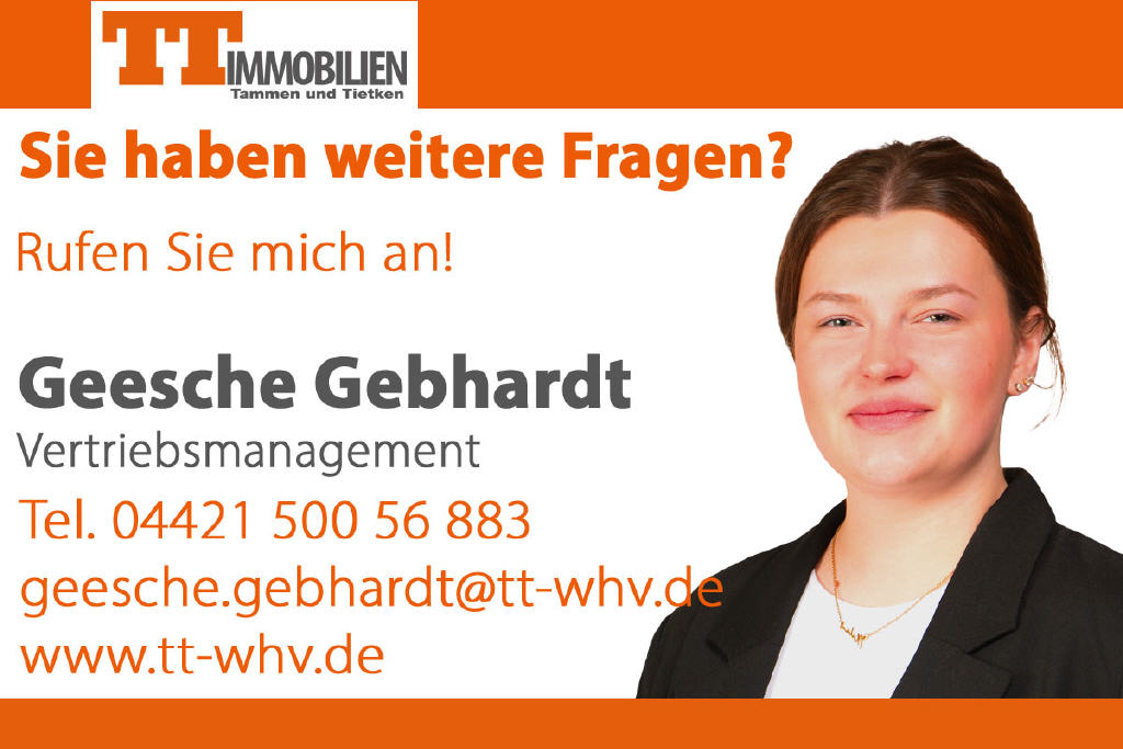 In zentraler Lage von Wilhelmshaven-Neuengroden präsentiert sich diese moderne und freundlich helle Eigentumswohnung im 1. Obergeschoss eines gepflegten Neubaus aus dem Jahr 2019 mit nur sechs Wohneinheiten. Die Architektur des Hauses ist klar und zeitlos, die Ausstattung der Wohnung hochwertig und konsequent auf Komfort ausgerichtet.