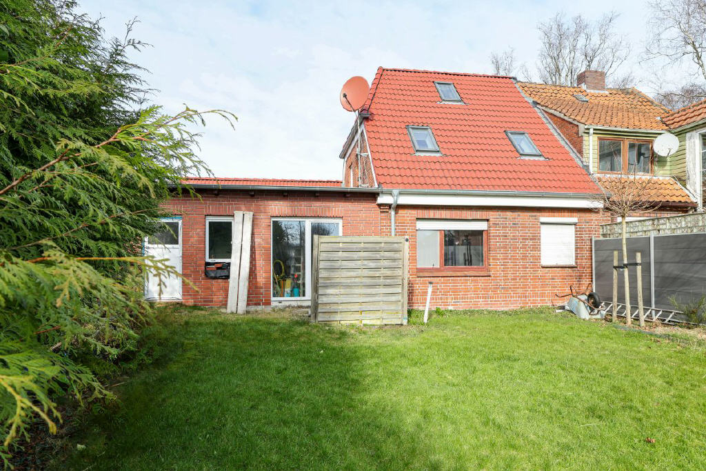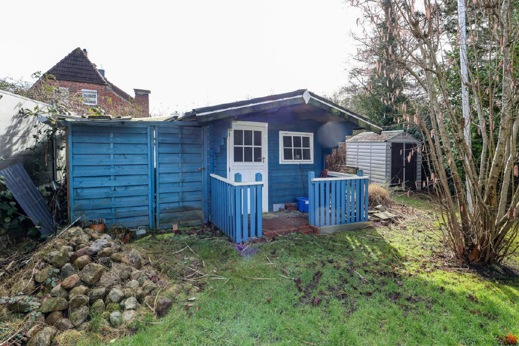 Der Garten erstreckt sich großzügig hinter dem Haus und bietet zahlreiche Gestaltungsmöglichkeiten: von der Familienwiese bis Gemüsegarten ist alles möglich. Ein hübsches Gartenhaus bietet zusätzlichen Stauraum. Hier wartet ein Garten darauf, mit neuer Energie und Ideen belebt zu werden!