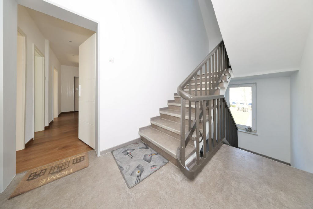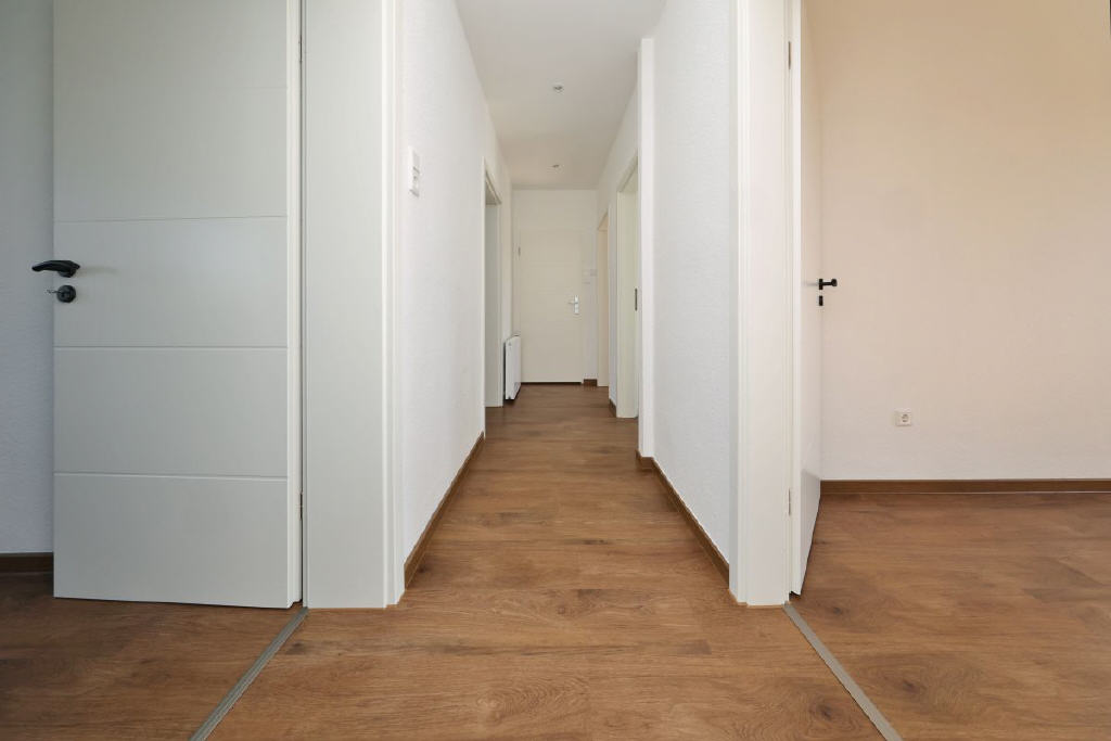 Im Zuge der Renovierung wurden sämtliche Wohnräume mit einem einheitlichen, hochwertigen Bodenbelag ausgestattet. Das Badezimmer präsentiert sich modern gefliest. Im Flurbereich sorgen integrierte Einbaustrahler für eine angenehme und gleichmäßige Ausleuchtung.