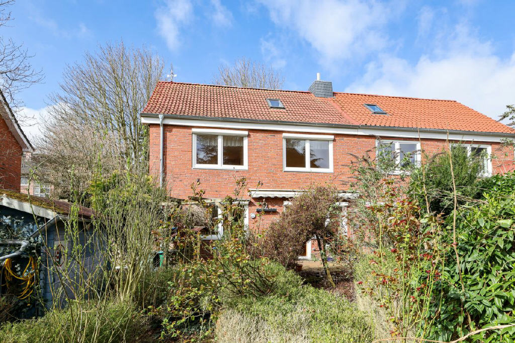 Der rückwärtige Garten präsentiert sich aktuell naturbelassen und dicht bewachsen eine ideale Grundlage für alle, die Freude daran haben, einen Garten nach eigenen Vorstellungen neu zu gestalten. Die vorhandene Terrasse mit Süd-Ost-Ausrichtung bietet einen geschützten Außenbereich direkt am Haus. Ein großes Gartenhaus schafft zusätzlichen Stauraum oder Platz für individuelle Nutzungsideen.