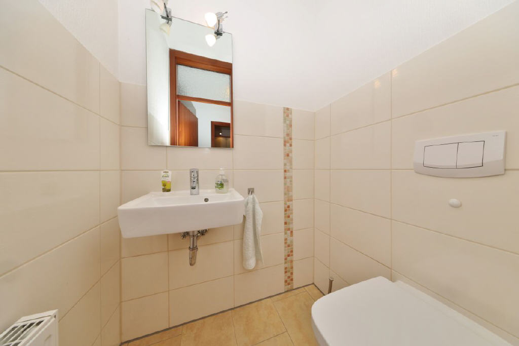 Das Obergeschoss ist über die elegante Treppe im Wohnzimmer erreichbar und präsentiert sich offen und vielseitig: Ein großzügiger und offener Raum ebenfalls mit Wasserblick bietet zahlreiche Nutzungsmöglichkeiten. Ergänzt wird diese Ebene durch ein weiteres Zimmer, welches sich flexibel als Gäste-, Kinder- oder Arbeitszimmer eignet. Eine großzügige Abseite im Obergeschoss, welche mit einem Velux-Fenster ausgestattet ist, bietet reichlich Abstellmöglichkeiten.