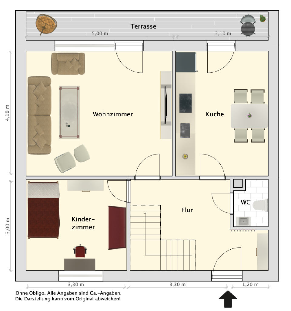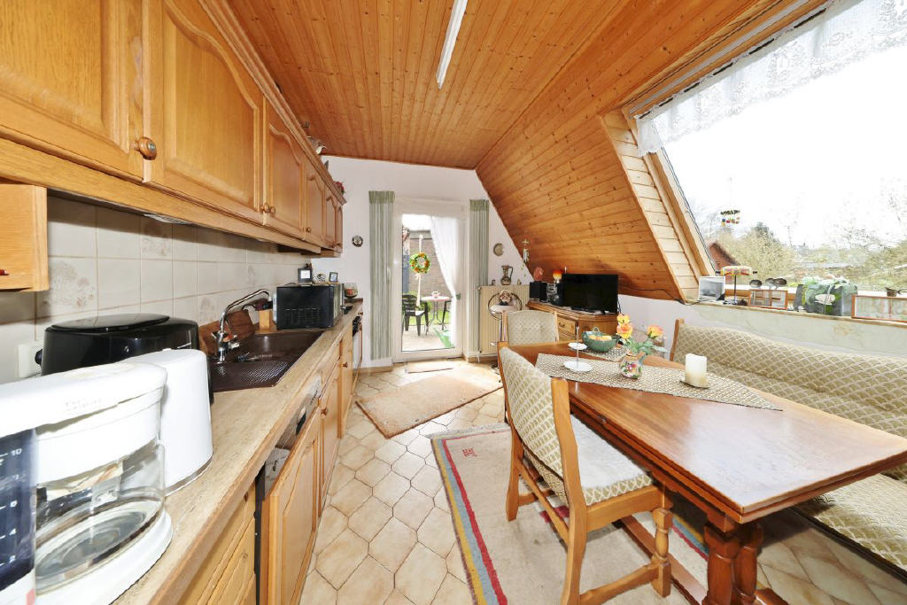 Bereits beim Betreten des Hauses wird die gemütliche Ausstrahlung spürbar. Das Erdgeschoss bildet den zentralen Wohnbereich: Die Küche ist mit einer Einbauküche ausgestattet und bietet Zugang auf die sonnige Terrasse. Das angrenzende Wohnzimmer öffnet sich ebenfalls zur Terrasse, die mit einer elektrischen Markise versehen ist und so auch an warmen Tagen angenehmen Schatten bietet. Ein Schlafzimmer befindet sich ebenfalls auf dieser Ebene und ermöglicht Wohnen auf einer Etage. Ergänzt wird das Raumangebot im Erdgeschoss durch ein Gäste-WC, in dem auch die Heizungsanlage untergebracht ist.