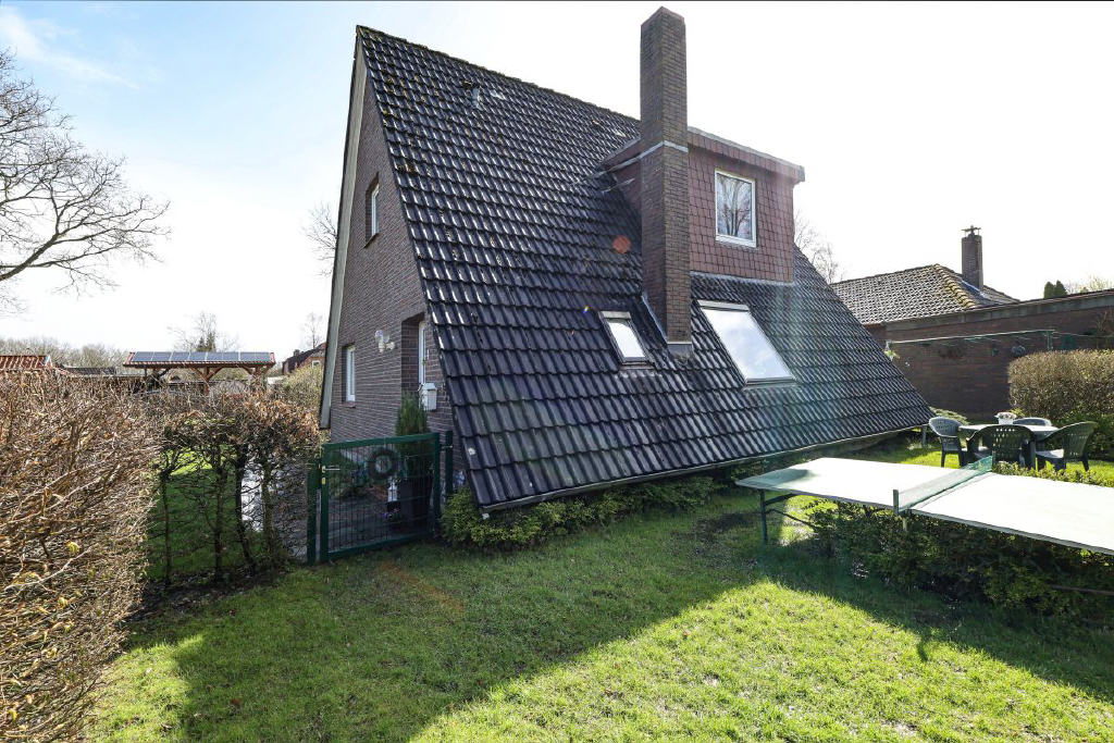 Das Haus befindet sich in einer ruhigen Anliegerstraße am Rand von Sande. Die Lage ist geprägt von wenig Verkehr und einer angenehmen Wohnatmosphäre; ideal für alle, die Ruhe und Natur schätzen, ohne vollständig auf Infrastruktur verzichten zu müssen.