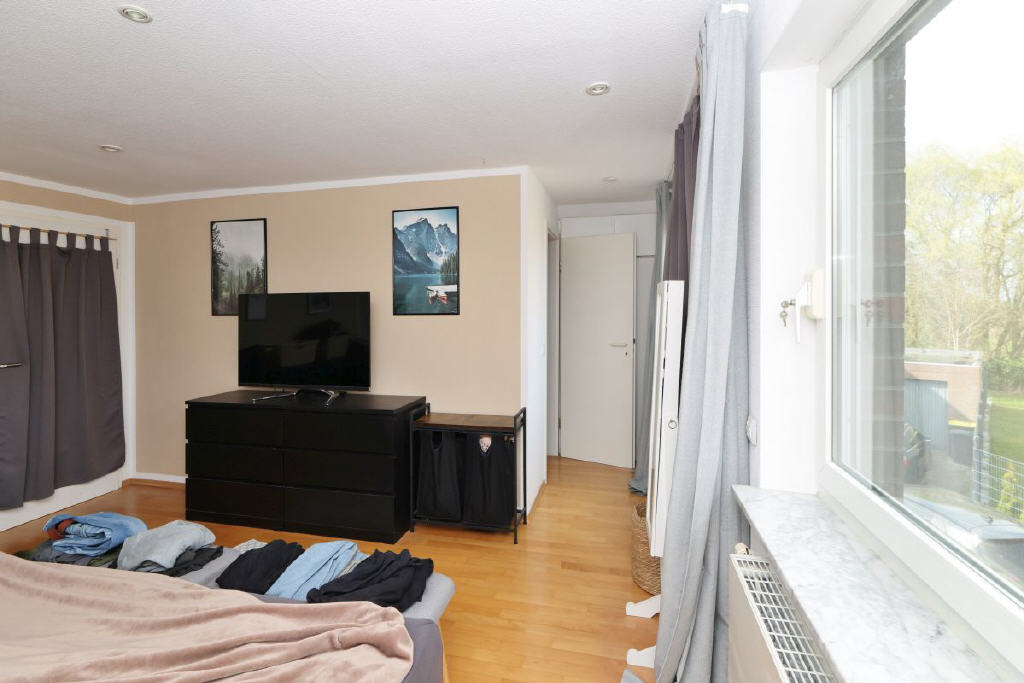 Das Schlafzimmer bietet zusätzlichen Komfort durch einen begehbaren Kleiderschrank sowie eine fest installierte Klimaanlage. Ein weiteres Zimmer verfügt über eine praktische begehbare Abseite, die zusätzlichen Stauraum schafft. Der vollständig isolierte Dachboden ergänzt das Platzangebot sinnvoll.